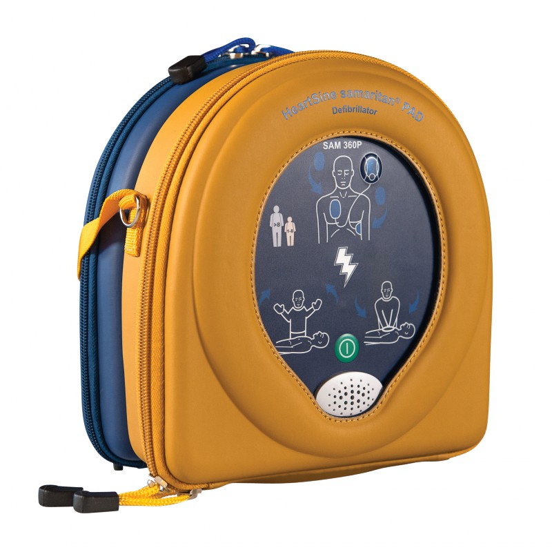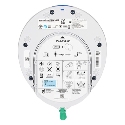 The HeartSine samaritan PAD 360P is a fully automatic external defibrillator (AED) that analyzes the heart rhythm and delivers an electrical shock to victims of Sudden Cardiac Arrest in order to restore the heart to normal rhythm. This user-friendly AED provides easy to follow visual and audio prompts to guide the rescuer through pad application. Shock delivery, if required, is fully automatic which means there is no shock button to press.
